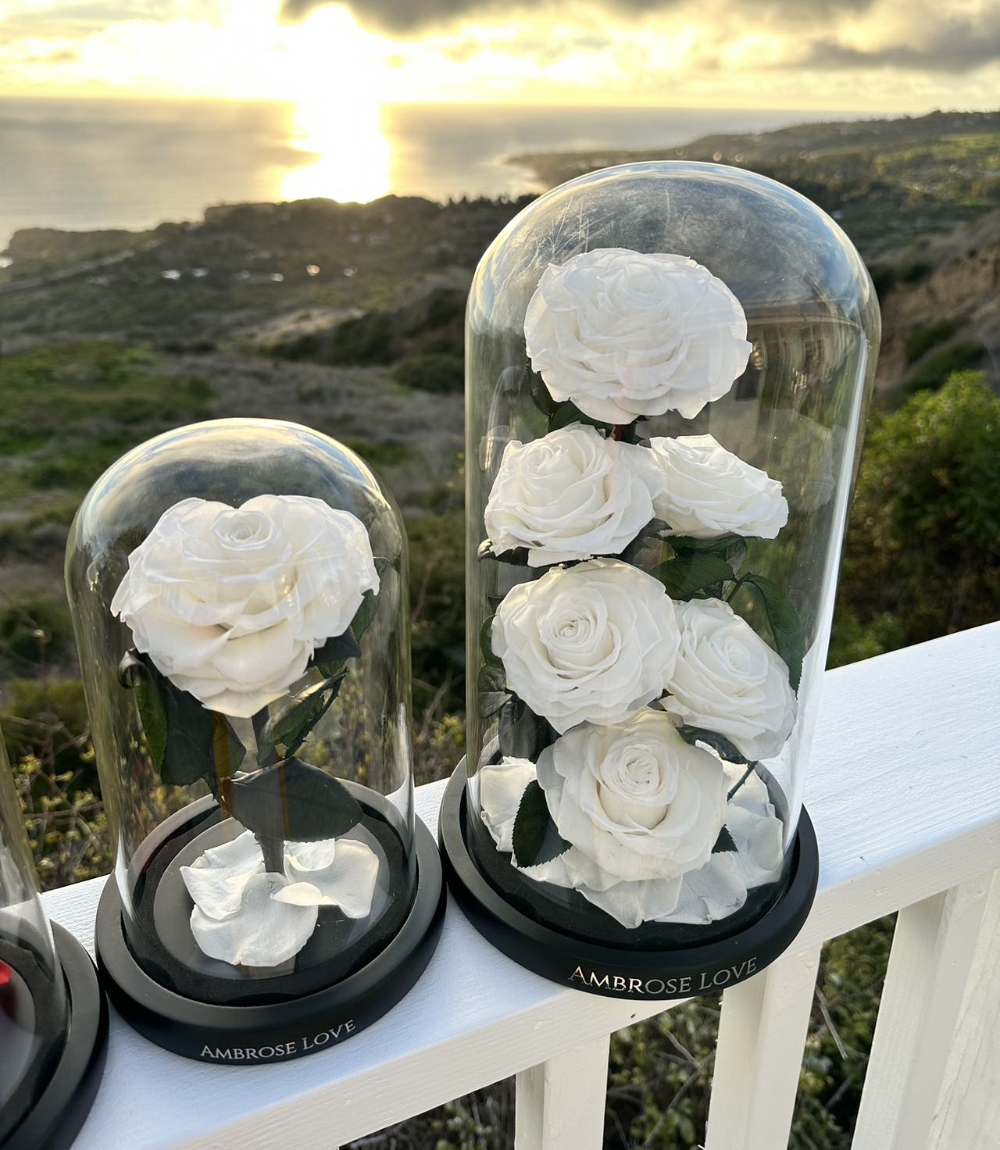 Hand-selected, vibrant red roses preserved at peak bloom Encased in a high-quality glass dome for protection and magnification Adorned with a luxurious black and gold ribbon Requires no maintenance or care Perfect for anniversaries, engagements, or as a timeless gesture of love