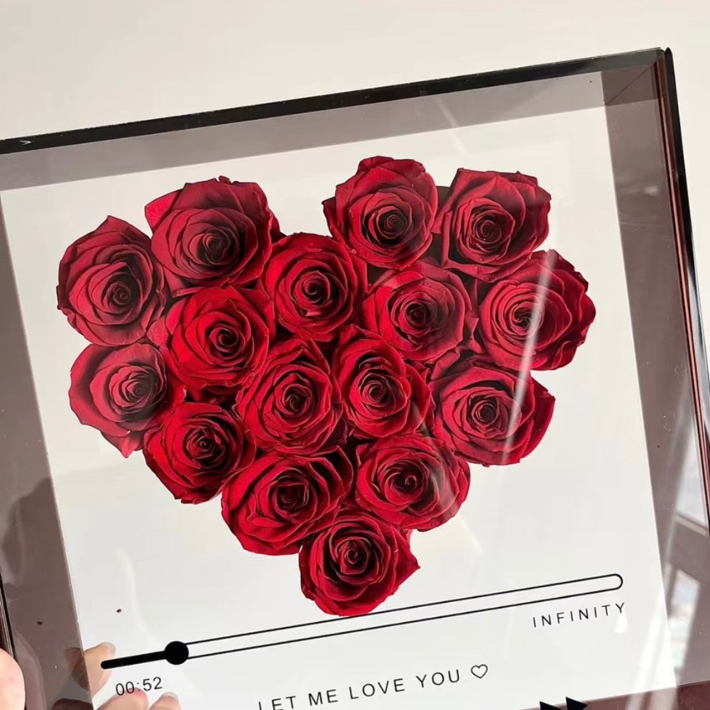 Designed for those who wish to pause the fleeting moments of passion, the Melody of Roses Infinity Frame is a visual and emotional spectacle, perfect for igniting memories that will resonate for an infinity.
