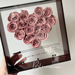 Introducing the Melody of Roses Infinity Frame - a symphony of love captured within the confines of a modern glass frame. This exquisite piece features a heart-shaped arrangement of deep red, preserved roses, each one a testament to timeless affection. Complemented by a chic, black ribbon that echoes sweet nothings with its "Just for you" script, this display is more than a gift; it’s a statement.
