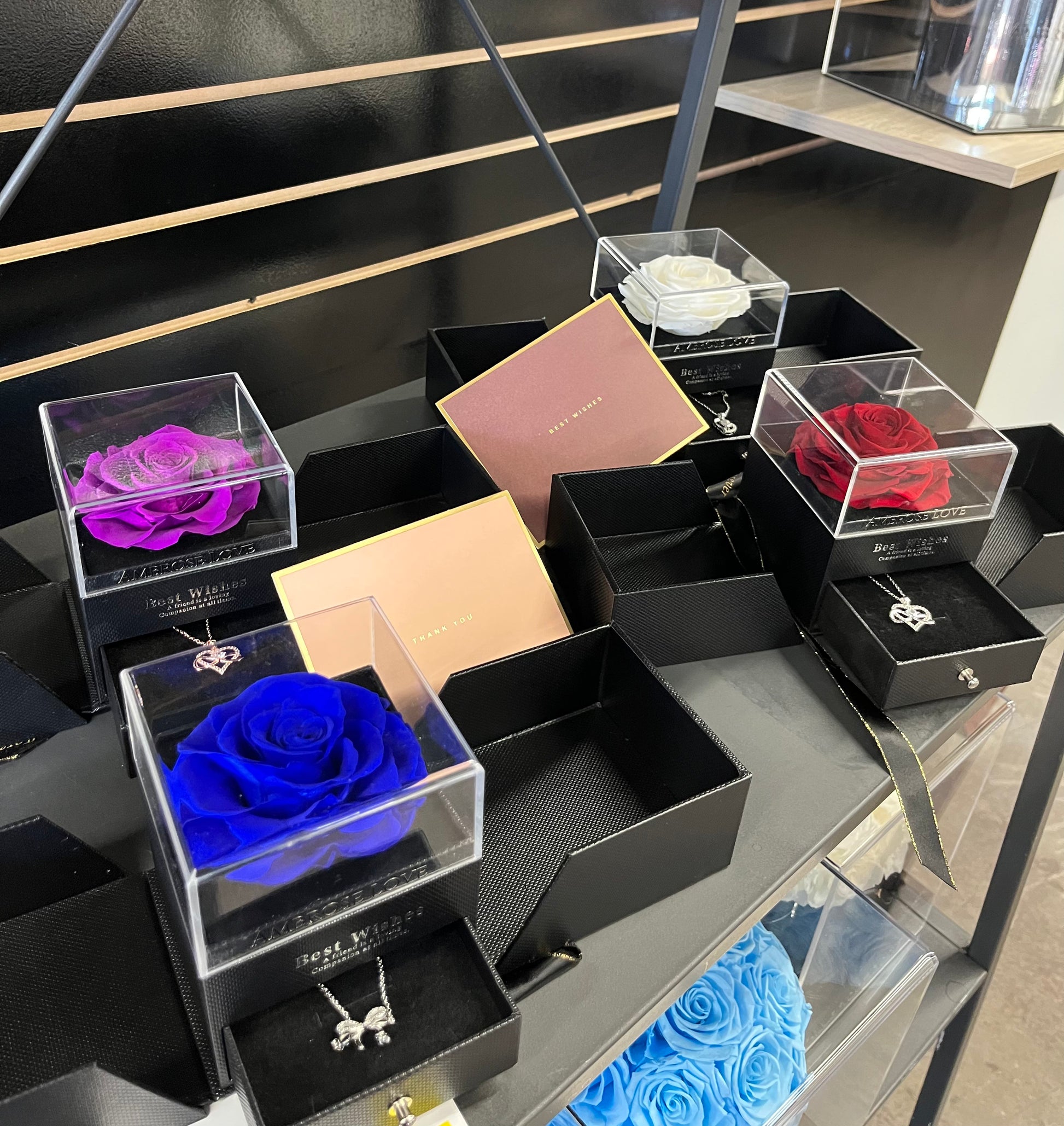 - Necklace with crystal - A necklace attached to the small drawer of the gift box.